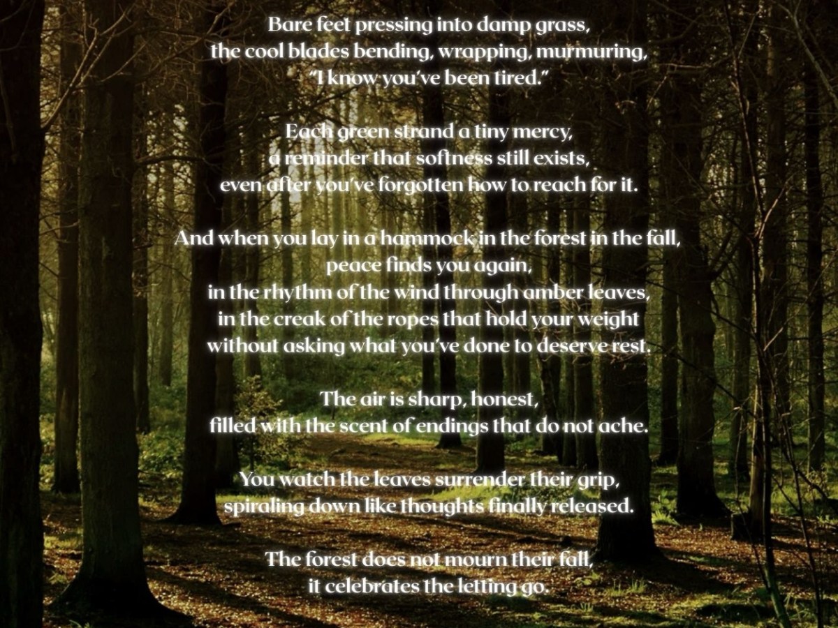 The Language of Stillness is about that quiet moment after you have been through it and your body finally unclenches. Not fake calm or forced healing, but the kind of peace that sneaks up on you when you stop running. It is nature saying hey, you can breathe now. It is realizing you do not…